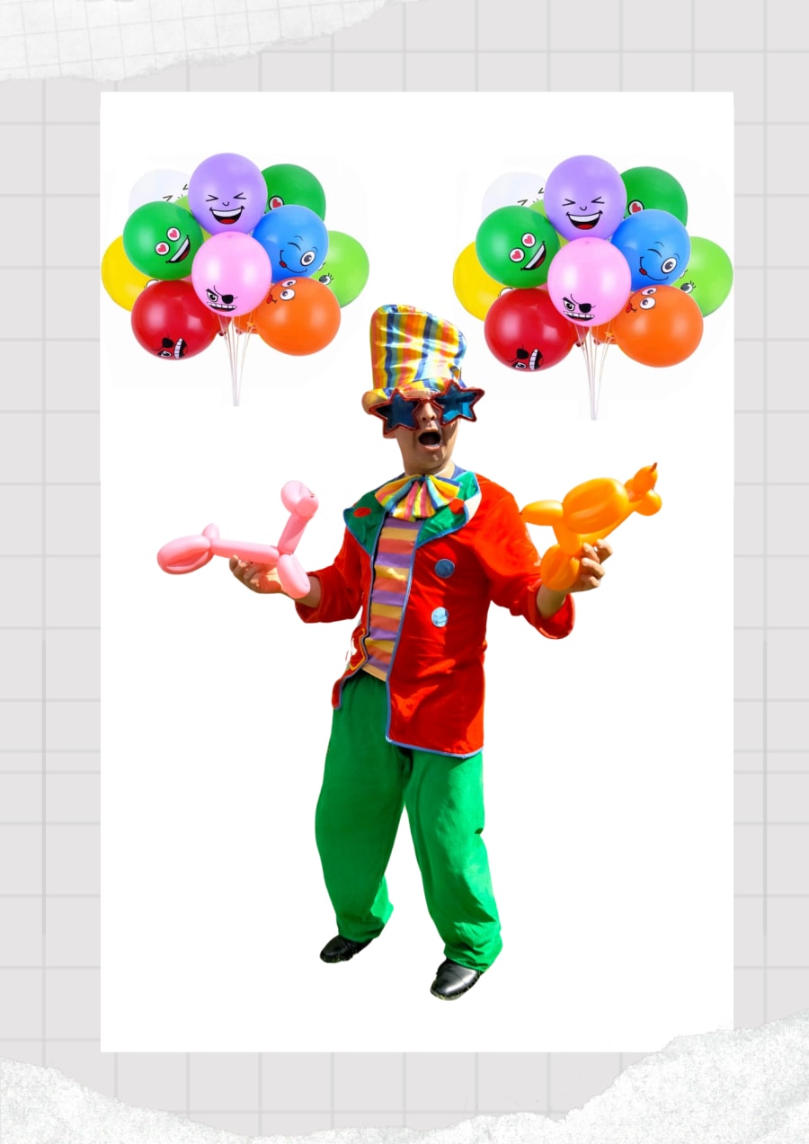I do many balloons for children, Magic show, Paint hands and hand out stickers, bubbles and dress like a clown.